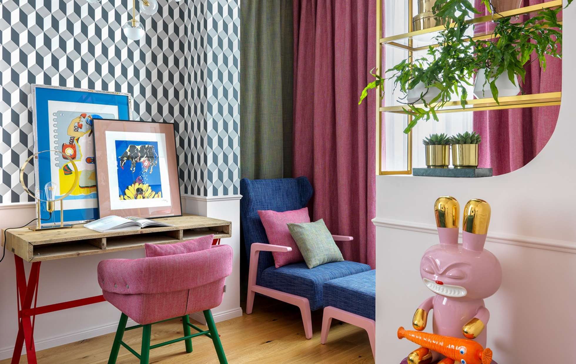 Дизайнер Ната Куц превратила скромную двухкомнатную квартиру в Москвае площадью всего 35 квадратных метров в настоящую лабораторию цвета. Проект, получивший название «Игра цвета», демонстрирует, как смелые эксперименты с палитрой могут преобразить даже самое небольшое пространство. В основе концепции лежит гармоничное сочетание нежных пастельных акцентов в декоре с выразительными крашеными бетонными поверхностями и кухонным гарнитуром насыщенного, глубокого оттенка. Этот контраст создаёт динамичный и современный образ.