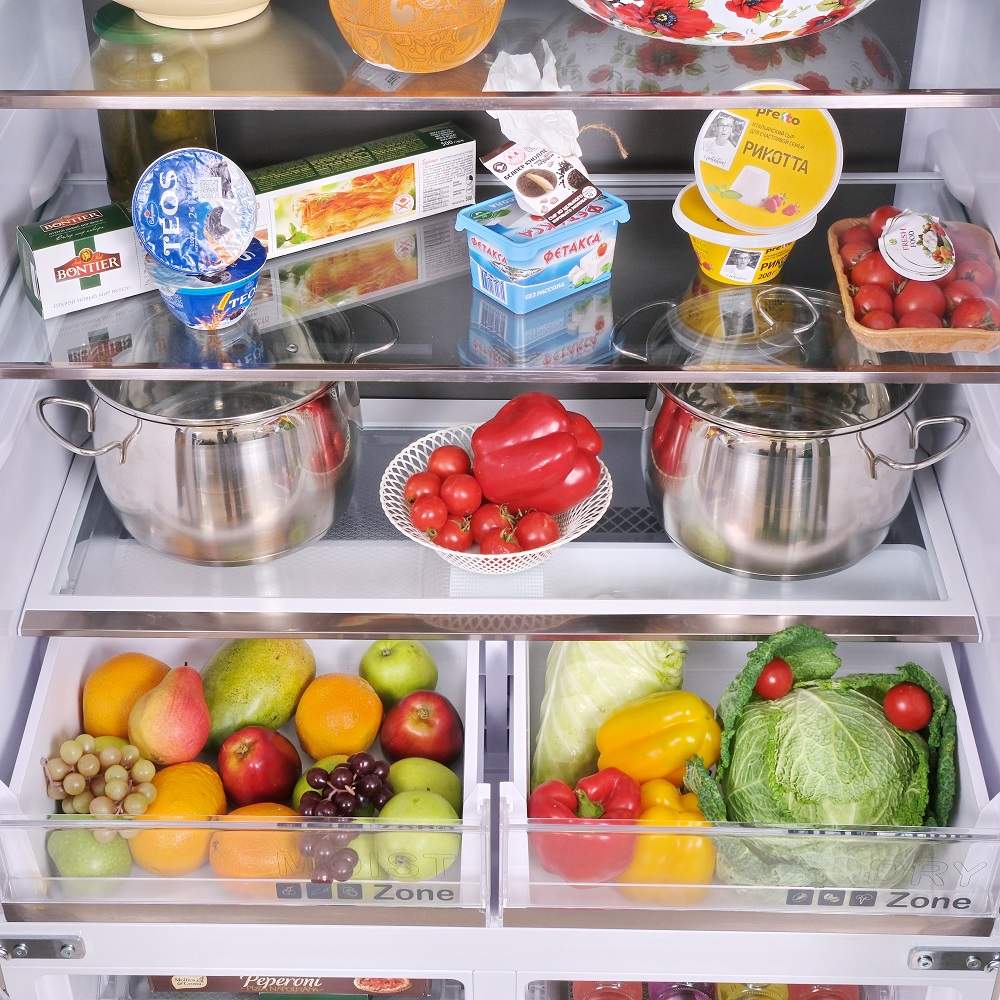 Особого внимания заслуживает зона свежести (био-зона, нулевая камера) — отделение с температурой около 0°C. В таких условиях мясо, рыба, сыры и зелень не замерзают, но сохраняют свои свойства в несколько раз дольше, чем в основном отделении.