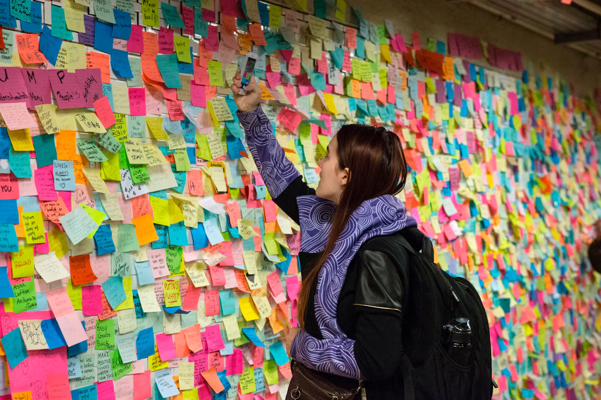 В декабре галерея Giant Robot в Лос-Анджелесе провела 14-ю ежегодную выставку Post-It Show — уникальное событие, объединяющее искусство и демократичный подход. Суть проекта проста, но гениальна: сотни художников, от начинающих до мировых знаменитостей, создают миниатюрные произведения искусства на стикерах или небольших холстах, а все работы продаются по единой доступной цене — всего 25 долларов. В этом году в выставке приняли участие более четырехсот авторов, включая таких мэтров, как создатель «Симпсонов» Мэтт Грёнинг, дизайнер Йоская Ямамото, иллюстраторы Джеймс Джин и Ханц, а также Энтони Зинонос и Хейли Пауэрс Торнтон-Кеннеди.