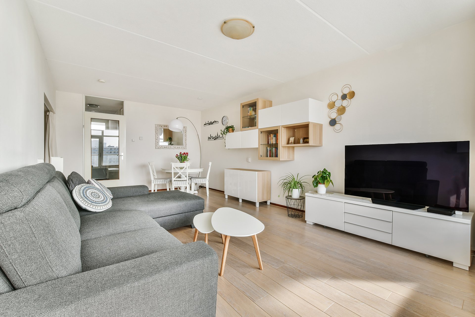 Эта квартира площадью 69 квадратных метров, расположенная на верхнем этаже, представляет собой настоящий оазис света и спокойствия. Её главным преимуществом, помимо продуманной планировки, является панорамный вид на город, который создаёт ощущение простора и свободы. Интерьер выполнен в нежной, умиротворяющей палитре, где каждая деталь способствует релаксации.
