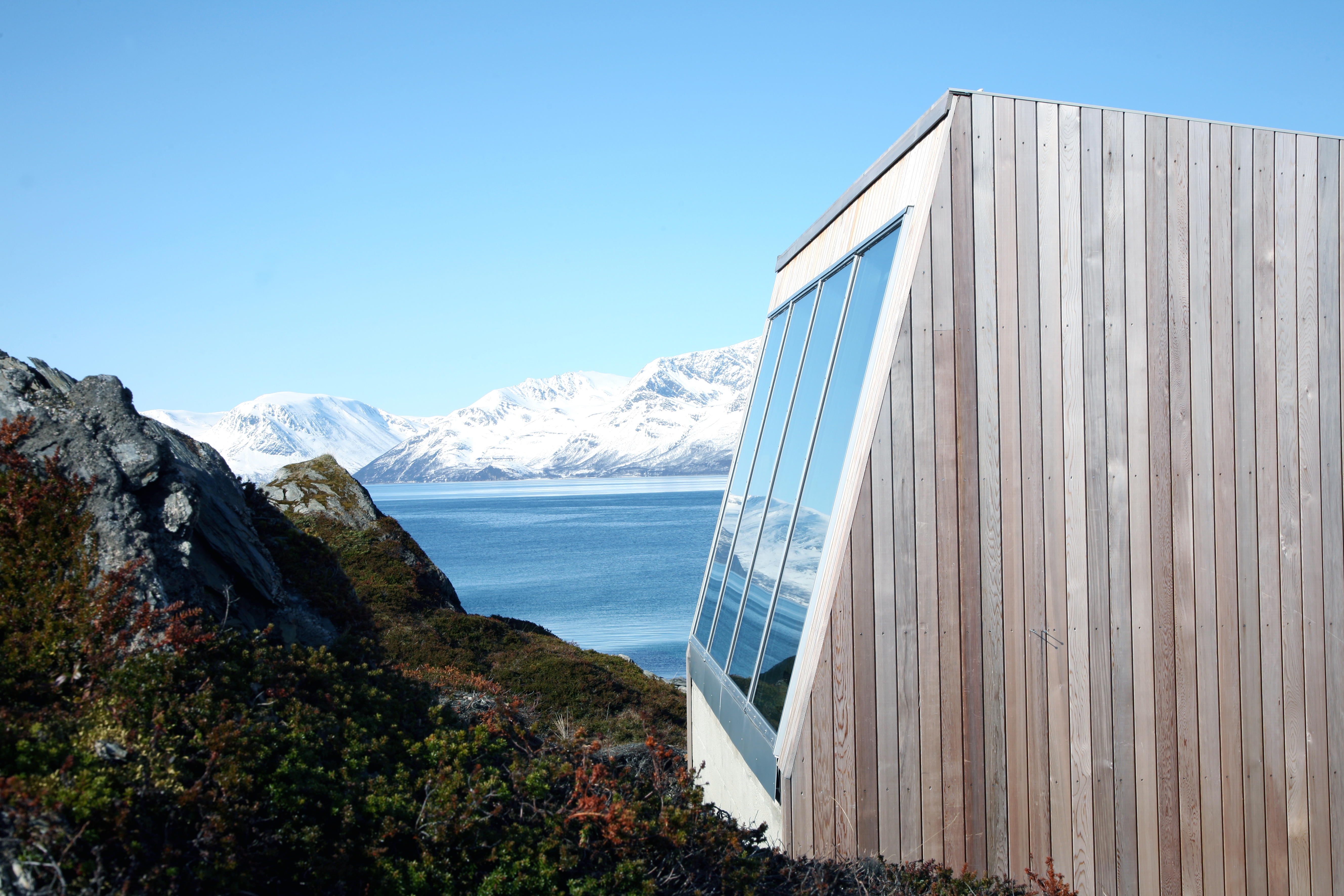 На живописном острове Халвара в Северной Норвегии, на берегу Эфьорда (части Офотенского фьорда), расположен уникальный участок. Он занимает естественный выступ, с которого открываются захватывающие дух панорамы на водную гладь и величественный горный хребет. Именно это место было выбрано для создания частного убежища.